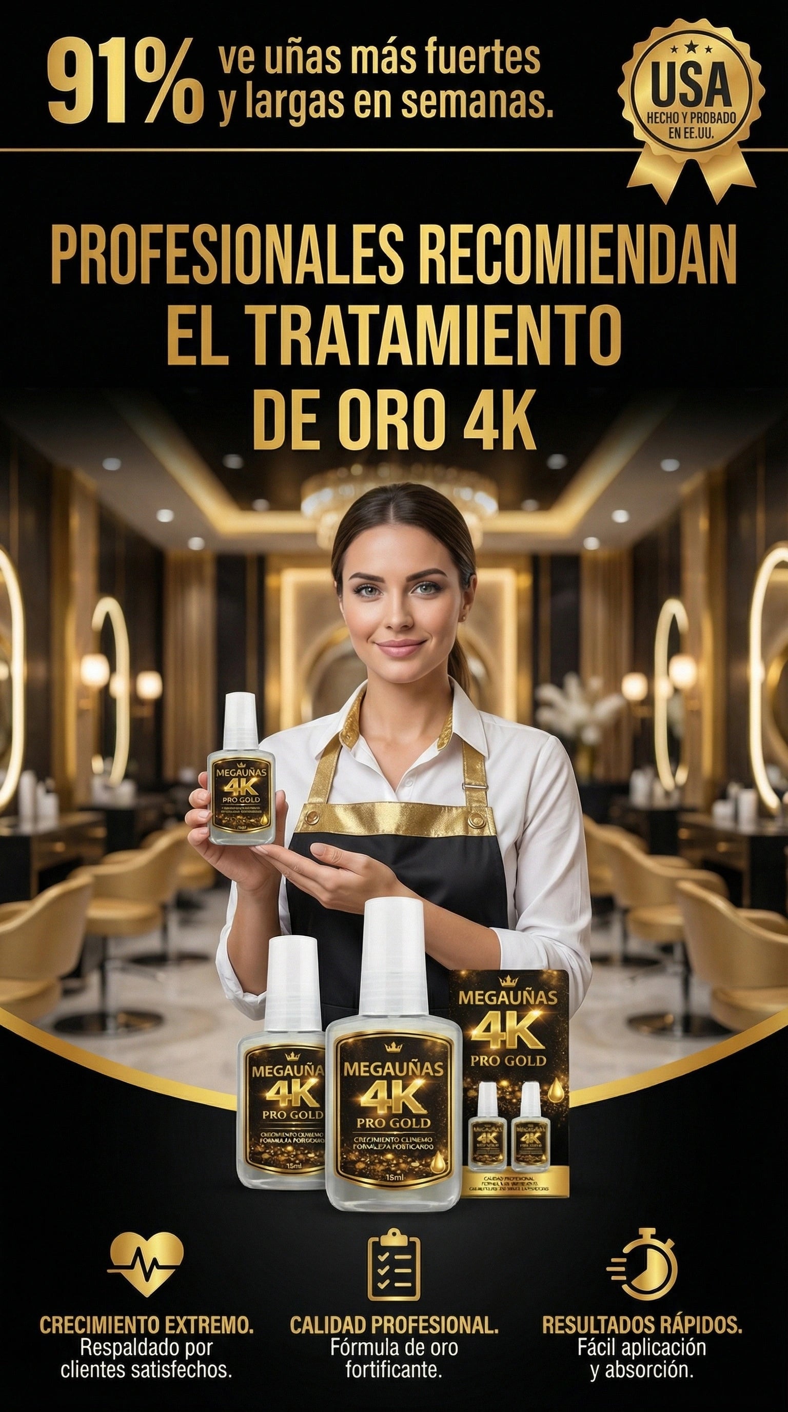 Muchas personas notan mejoras desde las primeras semanas de uso constante. El crecimiento y la fortaleza dependen de la constancia y del estado inicial de la uña.